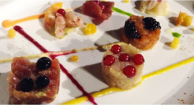 In un percorso di gusto che vi entusiasmerà, muovendo tra mare e terra, potrete gustare tavolozza del pittore, ossia geniale sequenza di assaggi di crudo proposti con abbinamenti geniali con frutta, poi riso Carnaroli al Franciacorta rosmarino polpa di riccio fiori di lavanda, salmone selvaggio in crosta di olive nere barba di frate indivia belga agli agrumi, milanese "alta e rosea", sfogliatine croccanti crema chantilly fragole cioccolato bianco. Siete ancora lì?
