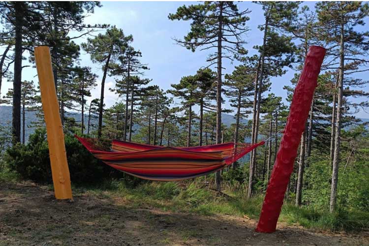 Il percorso che porta a raggiungerle sulla sommità del Bricco Grosso è una passeggiata di circa 2 km dal centro storico del borgo, a detta di tutti bellissima, in uno scenario di grande tranquillità e in un ambiente di grande valore. L’amaca sarà a disposizione per un momento di riposo, per una breve sosta di gruppo. Già oggi la porzione di territorio in questione è segnalato su tutti i siti che si rivolgono agli appassionati del trekking e ben presente nella mente di tanti appassionati. La coloratissima amaca, i cui toni della tela in policotone naturale che arriva dall’Olanda rimandano ai vini della zona – il giallo al Cortese (a sinistra, direzione Gavi) e il rosso al Dolcetto (a destra, direzione Ovada) ed è a tinta arcobaleno, scelta precisa e simbolica in termini di inclusività della proposta turistica locale.