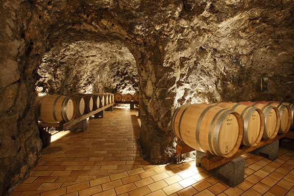 Le uve di questa viticoltura eroica sono trasformate in vini che vengono custoditi nell’oscurità e nel silenzio della splendida bottaia scavata nella roccia della Divina Costiera con temperature e umidità costanti.