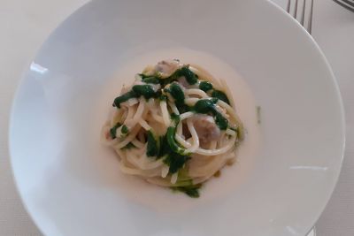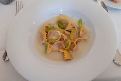 Passando ai primi chi conosce i rabaton, gratinati in questa versione, chi non assaggerebbe i corzetti (tipica pasta rotonda locale fatta a mano e impreziosita con fregi) con pinoli e maggiorana? Per altre occasioni vi attendono sempre gli agnolotti nei tre modi della tradizione cioè a culo nudo, nel vino (qui si tocca uno dei cardini della cultura gastronomica locale) e al tocco oppure il risotto agli asparagi o le lasagnette gratinate.