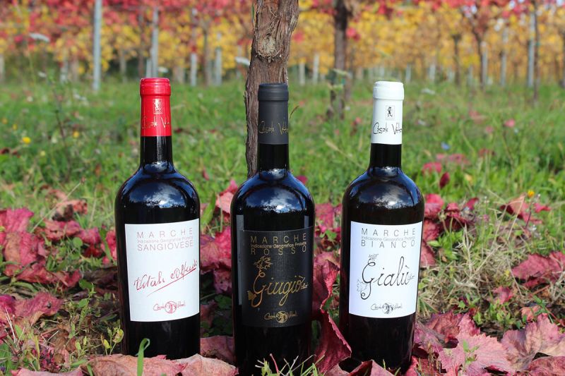 Marche Rosso 'Giugiò' (montepulciano, sangiovese) - Marche Bianco 'Celestiale' (pecorino) e 'Gialù' (pecorino) e 'Deviango' (sangiovese vinificato in bianco) - Marche Sangiovese 'Iakintos' - Spumante VSQ Metodo Classico Cuvée 'Mont’illì' - Spumante VSQ Metodo Classico Cuvée Nature 'Mont’illì'
