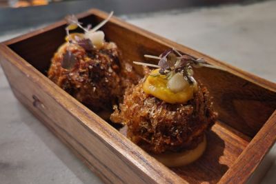 Questo è il posto perfetto per vivere un’esperienza fusion a tutto tondo, che mescola le basi della cucina italiana a riuscite contaminazioni orientali. Una bella sorpresa in una zona poco battuta di Londra che merita una sosta per la profonda ricerca negli accostamenti e la felice armonia di tutti sapori. Due i menu degustazione proposti, da 4 o 10 portate, con una formula che prevede anche il wine pairing o, in alternativa, l’abbinamento delle pietanze ai cocktail di una interessante drink list. Per noi percorso “small” e tanto godimento già a partire dagli starters (antipasti): focaccia, gorgonzola in spuma, crema di patate dolci in due colori, noci, mirtilli mezzi essiccati; panino al latte, paté di fegato di rana pescatrice, wakame e frutta in mostarda; insalata di radicchio e Castelfranco, barbabietola, arance rosse con crema di burrata e goma e semi di sesamo caramellati; tonno e kumquat; guancia di bue cotta a bassa temperatura impanata con katzoubushi e pere in agrodolce; pollo marinato e fritto con crema al mascarpone e tartufo (da lasciarci le papille gustative). Si prosegue con la pappardella ripiena di patate e scamorza con vongole e unagi (anguilla), mentre al main dish (piatto principale) la sorpresa sarà una costoletta di manzo cotta a bassa temperatura su crema di cavolo nero, salsa rossa di pomodori arrostiti, sedano rapa e pastinaca croccante. Ciliegina sulla torta, il dessert: una cheesecake alla ricotta bruciata con fresh kiwi e gelato al sesamo nero che ci regala da subito un motivo in più per riprogrammare una visita in questo ristorante che si piazza di diritto tra i nostri posti del cuore. Grandi!