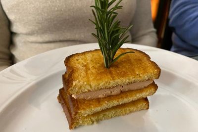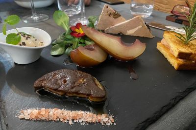 Via dunque col crostone di pan brioche foie gras e datteri o, ancor meglio, la sinfonia di foie gras con pera cotta alla cannella.