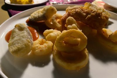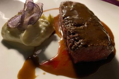 Ai secondi “Il mare dentro al fritto” (30 euro) è godurioso, ma il piatto che più ci è piaciuto è stato il fiocchetto di manzo podolico con salsa al Primitivo “Raccontami”, ciliegie e spuma di patate arrosto (30 euro). Io l’ho abbinato all’ottimo Negroamaro, “Fedale” 2017. Buono anche il tentacolo di polpo arrosto, salsa all’nduja, patate novelle alla brace e riduzione di cipolle borettana (25 euro).