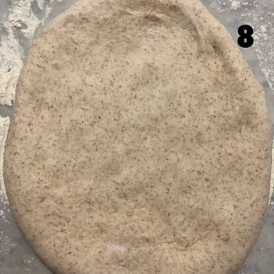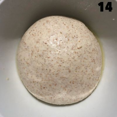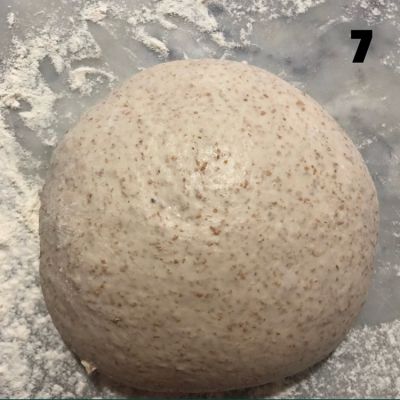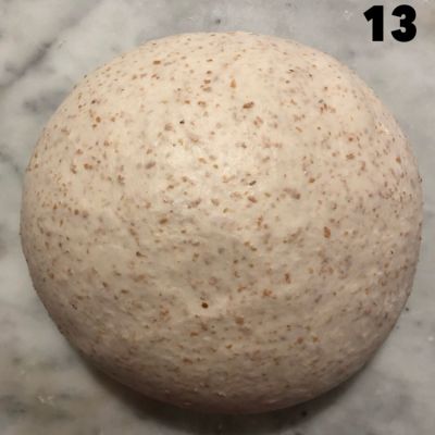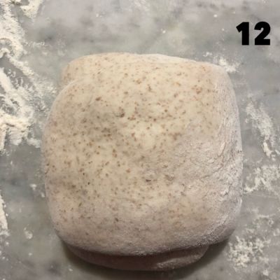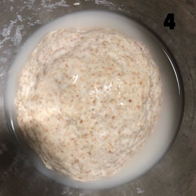 • assorbita tutta l’acqua salare (12g) e poco alla volta aggiungere la rimanente acqua 25g raggiungendo il 70% di idratazione (foto 1)