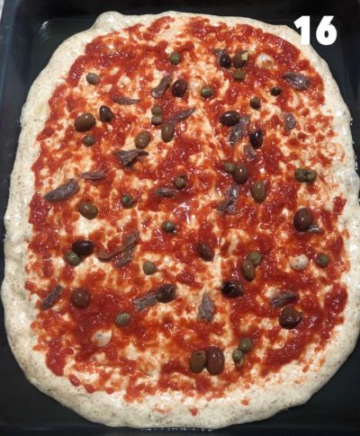 • passato il tempo sopraindicato farcirla a piacimento e infornarla a 220 gradi per 20/25 minuti a metà forno (foto 4)