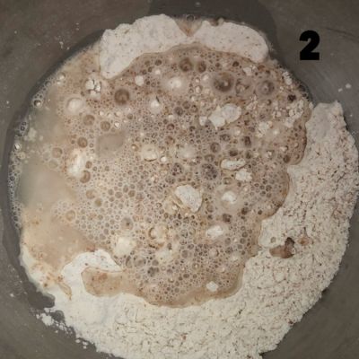 • Miscelare le due farine in modo da ossigenarle (foto 1)