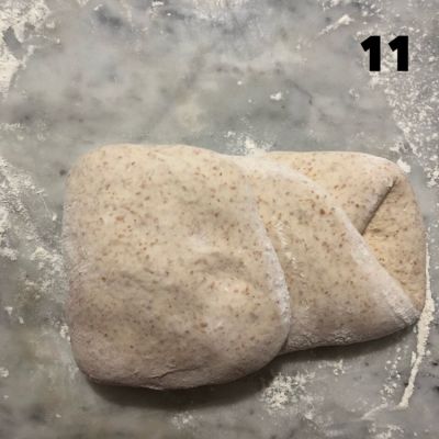 • effettuate le pieghe otterremo un impasto liscio ed omogeneo (foto 1)