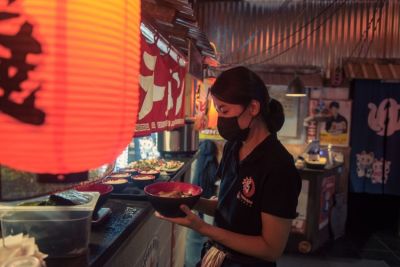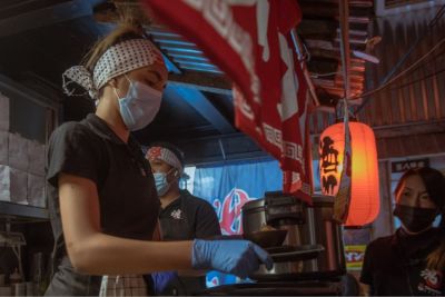 Gli stessi muri che per molti anni hanno ospitato Nabil, uno dei più celebri locali etnici della città, oggi sono annunciati dalle tradizionali lanterne rosse di carta. Il locale, disposto su due piani, riproduce i vicoli di Tokyo. Un'esperienza amplificata dai suoni, che mescolano rumori e voci di una strada giapponese.