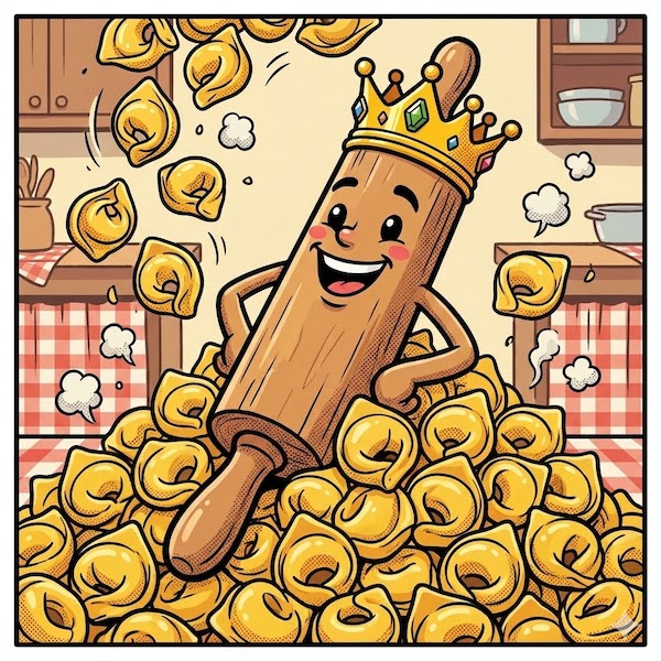Beniamino Baleotti, Il Re della Sfoglia appellativo che ha dato anche al suo libro, ha deciso di assicurare il proprio mattarello a cui ha dato anche un nome: Antonello. (Italia Oggi)