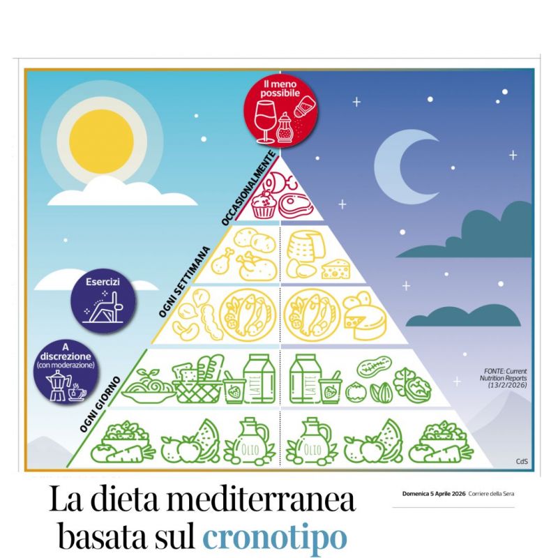 Un team di ricercatori italiani ha proposto di integrare la piramide alimentare con la crononutrizione, adattando i pasti al proprio cronotipo ("allodole" o "gufi"). Lo studio, pubblicato su Scientific Reports, sottolinea che l'orario di assunzione dei cibi è cruciale per ottimizzare il metabolismo e il controllo glicemico. Il modello suggerisce di consumare i carboidrati complessi al mattino, quando la sensibilità insulinica è più alta, e di prediligere a cena proteine di qualità e verdure che favoriscono il riposo. (CorrieredellaSera) @ È ancora in gravi condizioni il dodicenne rimasto incastrato nel bocchettone di una piscina idromassaggio nel Riminese. L’incidente è avvenuto la mattina di Pasqua sotto gli occhi dei genitori: il ragazzo è stato liberato solo dopo lo spegnimento dell’impianto. (CorrieredellaSera) @ Osini, un borgo dell'Ogliastra con meno di 700 abitanti, si conferma capitale della longevità vantando ben cinque centenari, una densità 27 volte superiore alla media regionale. Il segreto dei “grandi vecchi” risiede in uno stile di vita attivo, alimentazione genuina e una genetica privilegiata: per onorare questo primato il Comune sta restaurando il borgo vecchio e ha dedicato ai suoi ultracentenari un murale celebrativo. (CorrieredellaSera) @ Torino vanta una tradizione confettiera bicentenaria: già dal 1826 maestri come Stratta e Reina iniziarono a produrre bonbon artigianali con lo storico incarto "a farfalla", seguiti nel 1857 dalle iconiche pastiglie Leone, amate da Cavour per schiarirsi la voce prima dei discorsi in Parlamento. Da rimedio per la gola a prodotto di piacere, l'arte della caramella torinese resta un'eccellenza che unisce storia, design e sapienza artigiana. (Corrieredella Sera)