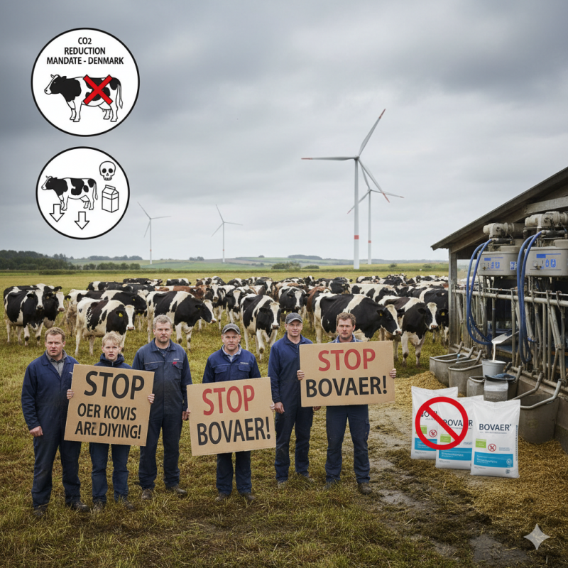 Polemica in Danimarca, dove una legge impone agli allevatori l'uso di un additivo, il Bovaer nei mangimi per ridurre le emissioni di metano del bestiame. Il provvedimento ha scatenato la protesta degli allevatori che denunciano gravi effetti collaterali, tra cui crampi, aborti e la morte di centinaia di mucche, oltre a un forte calo della produzione di latte. Nonostante l'approvazione europea, la sostanza è contestata per i suoi effetti sulla salute animale e per i sospetti, emersi da studi nel Regno Unito, di un possibile effetto cancerogeno del principio attivo (3-nitroossipropanolo) sul latte. (LaVerità)