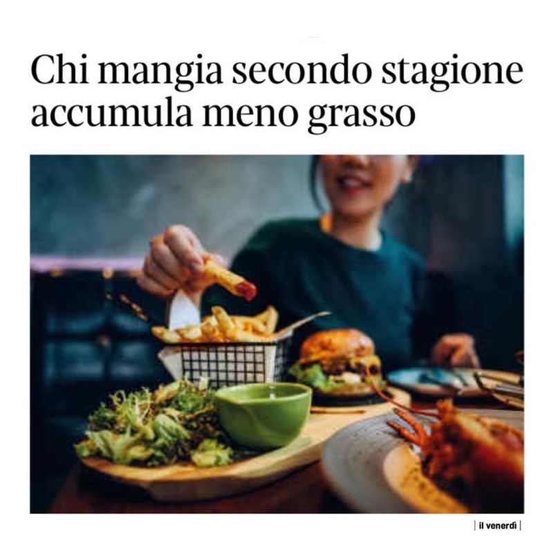 Uno studio del biologo Daniel Levine rivela che mangiare secondo stagione aiuta a prevenire l’accumulo di grassi. Il nostro orologio biologico utilizza infatti la proteina Per2 per interpretare i segnali della dieta: i grassi insaturi (noci, semi, pesce) tipici dell'inverno stimolano il corpo a bruciare energia, mentre i grassi saturi segnalano una "estate biologica" che favorisce l'accumulo di adipe. La disponibilità perenne di grassi saturi crea un'estate biologica artificiale che causa sovrappeso e disturbi del sonno. Seguire i ritmi stagionali a tavola è dunque fondamentale per il controllo metabolico. (LaRepubblica)