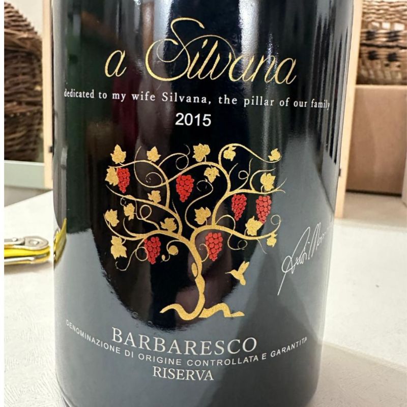 È il Barbaresco Riserva “A Silvana” 2015 prodotto da Massimo Rivetti di Neive. Ha colore rubino trasparente con riflessi aranciati; al naso si apre delicata la viola per poi andare nel profondo delle note di sottobosco e cuoio. In bocca è un campione indicibile di eleganza, sostenuto da una bella spada acida dentro un equilibrio che termina con la setosità dei suoi tannini.