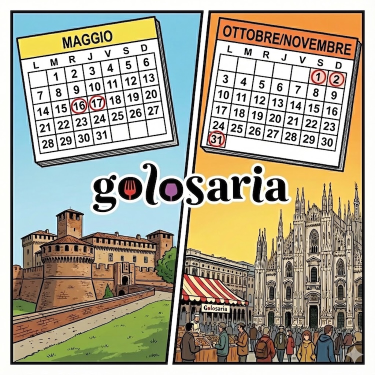 Il vostro calendario 2026 è ancora (parzialmente) vuoto? Vi suggeriamo subito due date da segnare in rosso che corrispondono ai weekend di Golosaria Monferrato e Golosaria Milano: appuntamento quindi il 16 e 17 maggio al Castello di Casale Monferrato e in oltre 30 paesi