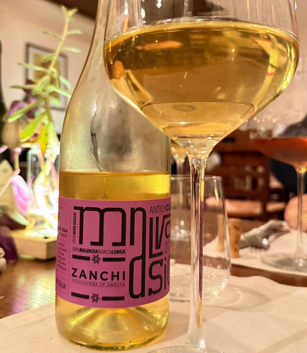 Leonardo Zanchi di Amelia (Terni) è autore di questo vino spaziale millesimo 2024: una Malvasia bianca lunga, da vigneti 52 anni. Prodotto con antichi cloni in sole 1730 bottiglie, frutto di vendemmia manuale, non filtrato e con fermentazione spontanea, colpisce fin dal colore paglierino che tende all’oro. Al naso l’evidenza del ribes e della frutta esotica. In bocca è una spada acida piena con freschezza pregnante e finale sapido, un po’ speziato, pieno, ghiotto. Ruota in bocca. Assaggiato alla Clessidra di Terni, grazie al patron Emiliano Bussoletti