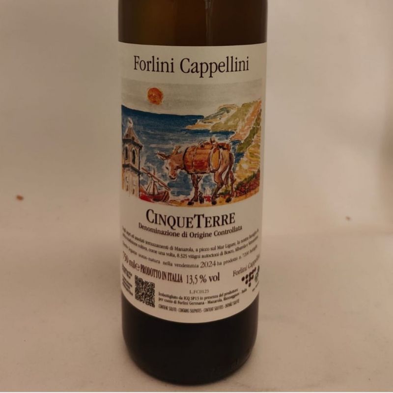 È il Cinque Terre Bianco 2024 dell’azienda Forlini Cappellini di Manarola (SP) da uve vermentino, bosco, albarola. Di colore oro, ha naso di uva passa e banana ; in bocca è secco, diritto con una mineralità marcata.