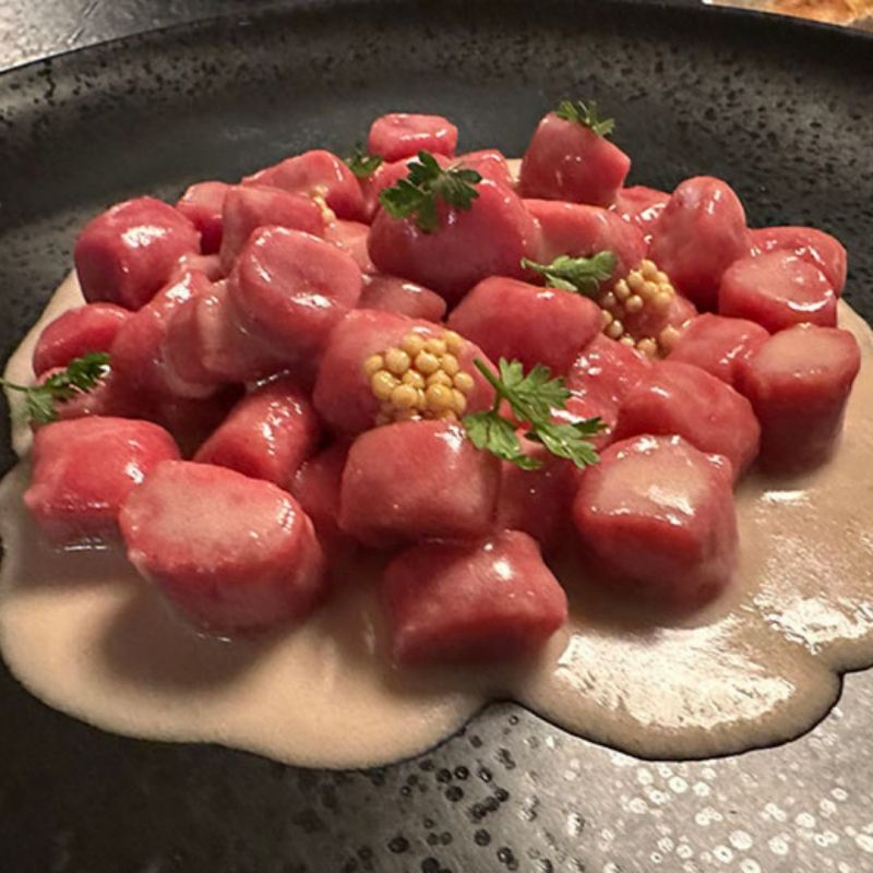 È il Moscatello & Muliner di Pozzolengo (loc Moscatello, 5 BS) dove dopo gli amuse bouche e antipasti curiosi è subito da provare la zuppa Imperiale in brodo di cappone o gli gnocchi di barbabietola con blu di capra & senape. Si prosegue con rolatina di capretto da latte con patate arrosto e ristretto di Tuchi per chiudere con tarte tatin di mela campanina con gelato alla vaniglia.