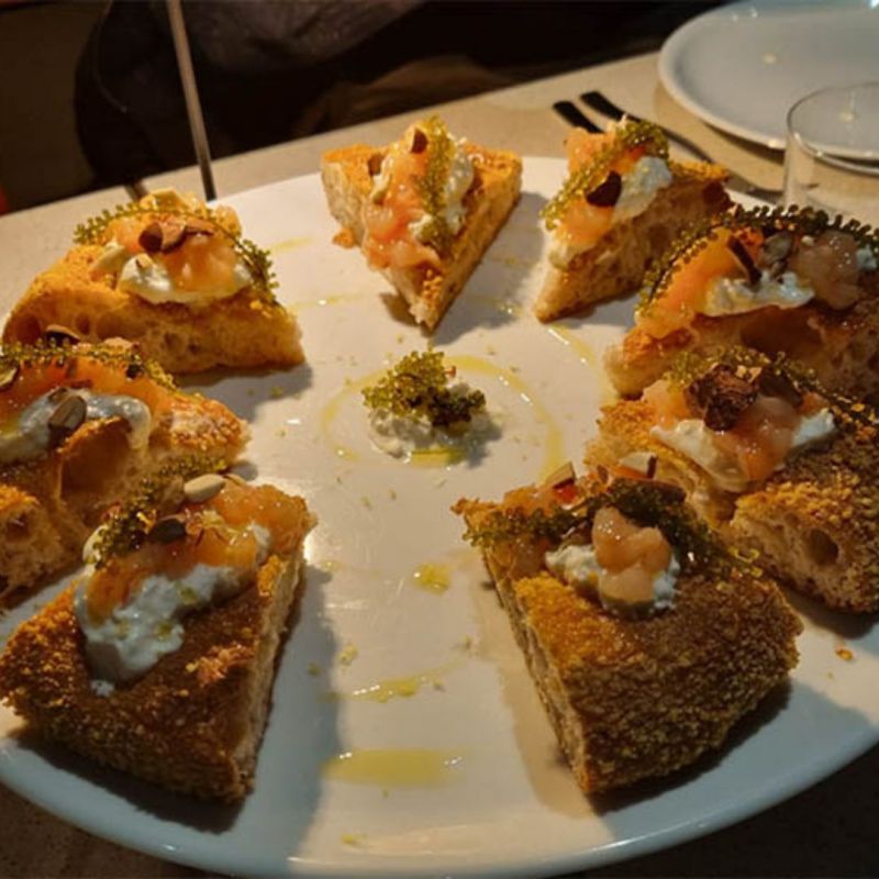 È la pizzeria il Balobino a Padova (via Boccalerie, 8) dove l’arte dell’impasto, con Farine Petra, si traduce in pizze leggere e fragranti. Ecco quindi l’Acciuga con impasto di ceci e farro, salsa di pomodoro Prunilli, Torremaggiorese, San Marzano, stracciatella, filetto di acciuga del Mar Cantabrico, origano vulcanico, olio Evo Bio; la Gambero Rosso con impasto mais estruso, stracciatella, tartare di gambero rossa, mandorle tostate di Noto, caffè Sicilia, zest di limone, uva di mare, olio Evo Bio. Si chiude con tiramisù o focaccia dolce prodotta da loro.