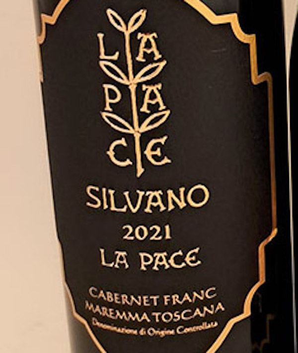 Il Maremma Toscana Cabernet Franc Silvano 2021 di Podere La Pace di Massa Marittima (Gr). Si presenta di color inchiostro, con nota vegetale evidente. In bocca è tannico, sugoso, leggermente amaricante. Molto piacevole.