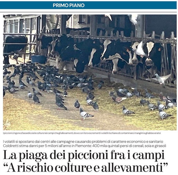 I piccioni sono (quasi) peggio dei cinghiali. Parola di Coldiretti che tra le calamità naturali che colpiscono settimanalmente l’agricoltura annovera anche i volatili. Danni stimati annualmente per 5 milioni nel solo Piemonte.